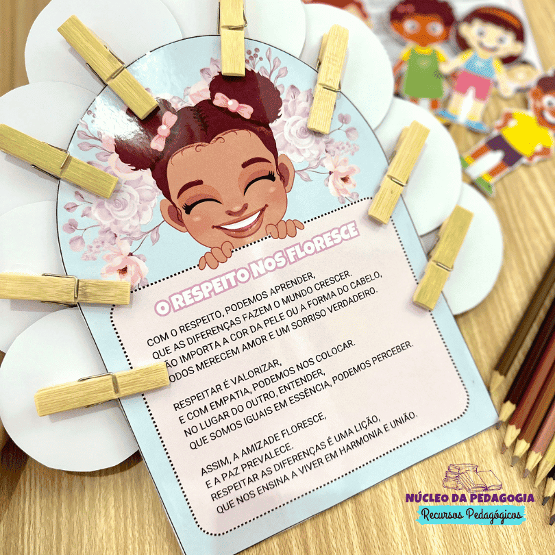 Com o poema pode -se trabalhar valores com as crianças, como Respeito, Empatia, Valorização das Diferenças, União e Amizade.
