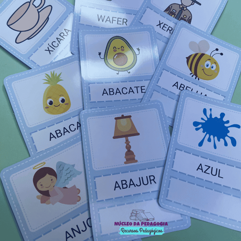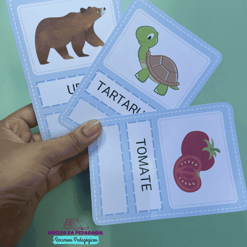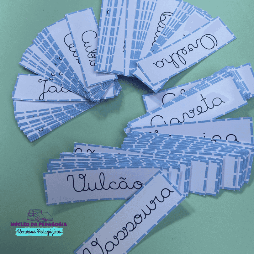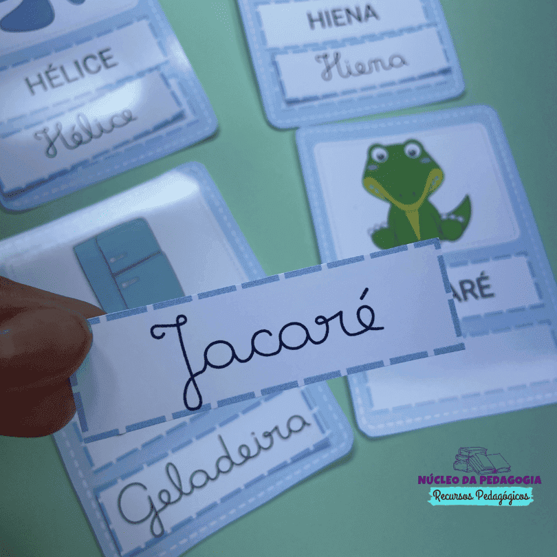 Para utilizar as fichas é necessário recortar tanto as fichas como as palavras móveis, e a criança deverá identificar as palavras escritas em letra cursiva e fazer o pareamento,organizando as peças móveis nos espaços correspondentes.