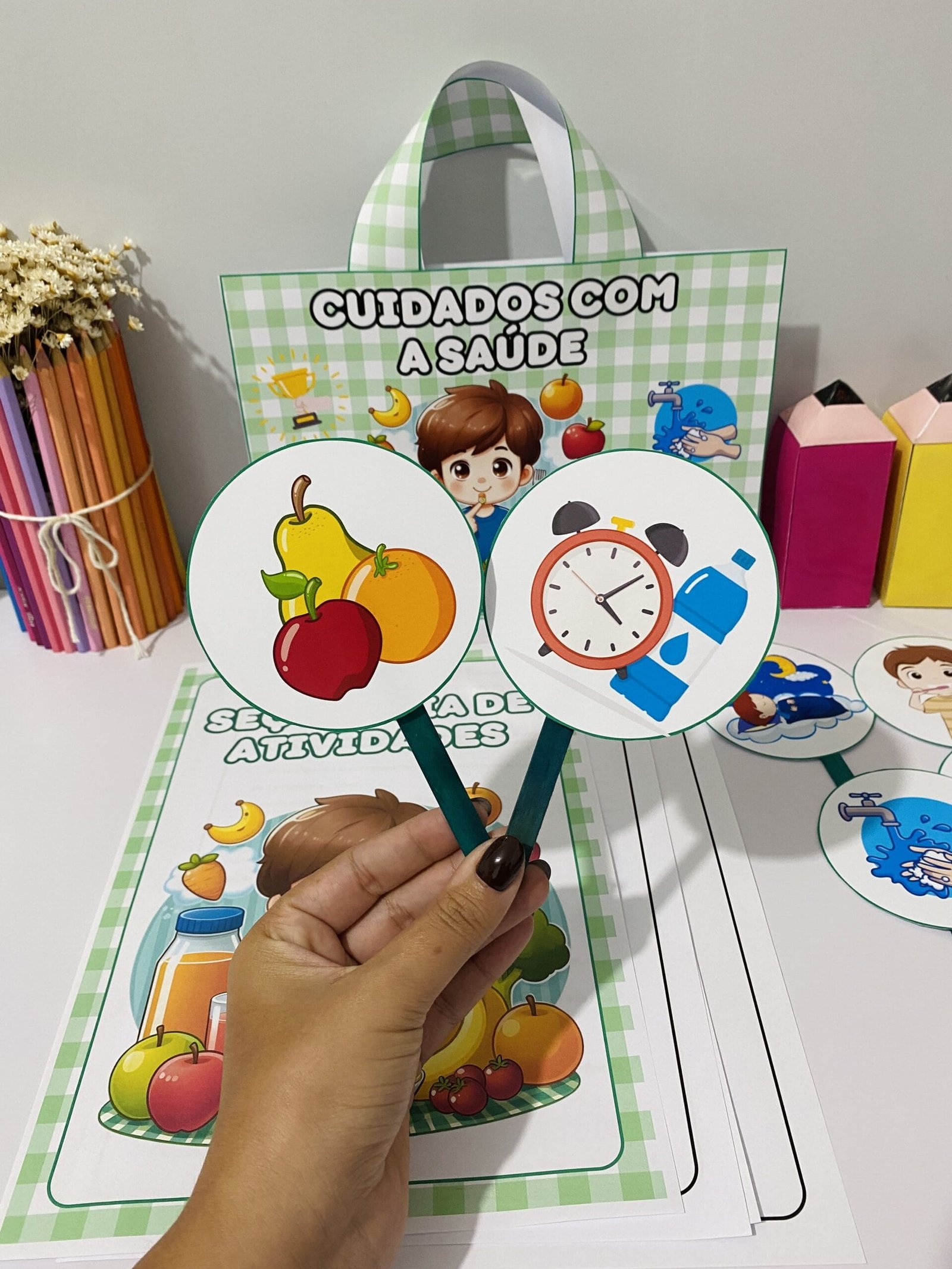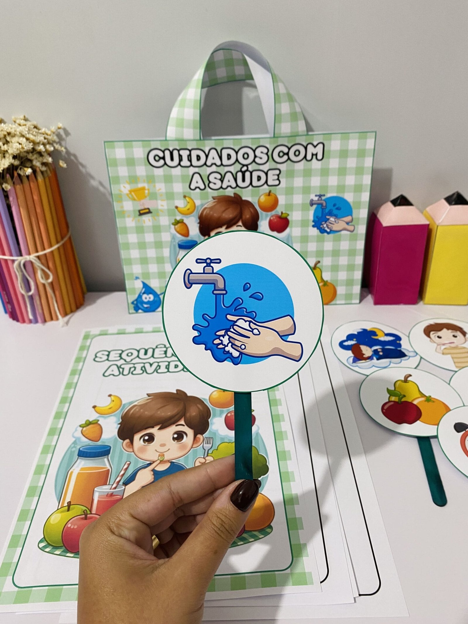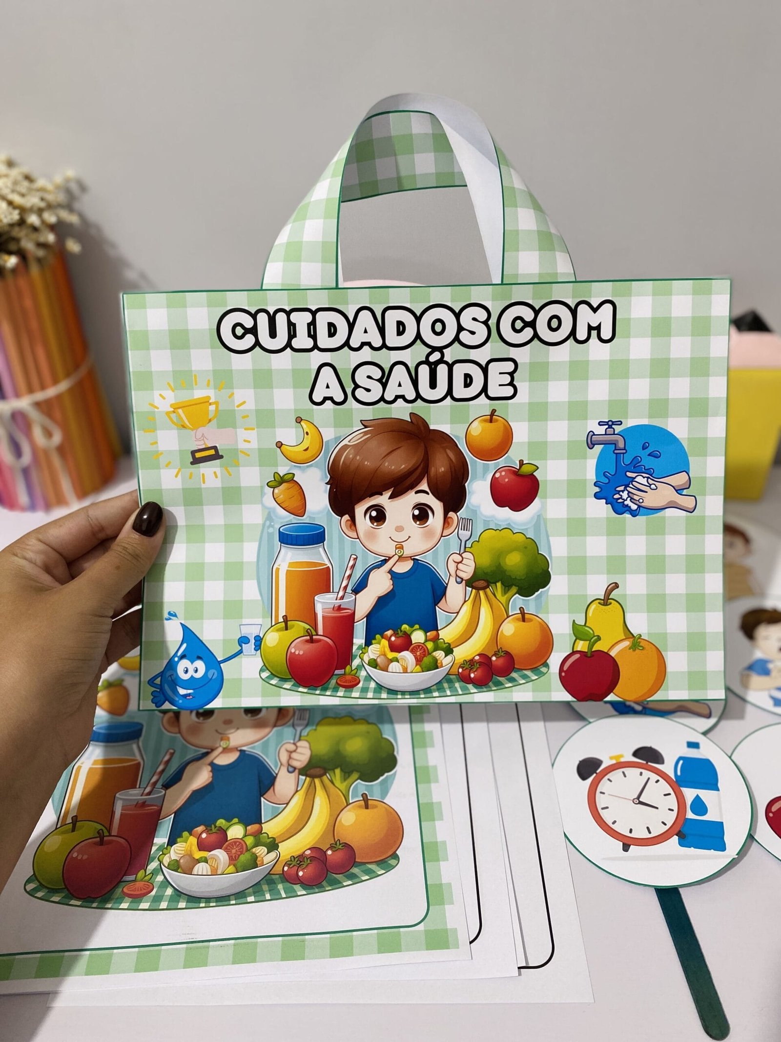 Recurso pedagógico para trabalhar com as crianças a importância dos hábitos saudáveis e cuidados com o Corpo para se manter saudável.